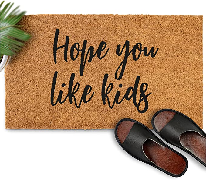 Welcome to the Funny Doormats collection at Funny Home Decor! We have an incredible selection of funny doormats that are sure to bring a smile to anyone who visits your home. Our Hope You Like Kids Doormat is perfect for the parents and kids in your life. The Funny Doormats collection is designed to make even the most mundane moment of greeting visitors at the front door an enjoyable experience. This Hope You Like Kids Doormat is made from durable material that won’t fade over time and can be easily washed to keep it looking fresh. Its bright colors and whimsical design will make your guests smile, no matter how tired you are after a long day. Plus, it’s so fun that even the kiddos will want to bring their friends over to show off their new Funny Doormat. So what are you waiting for? Get your Funny Doormats collection today and get ready to make every entrance a memorable one!
