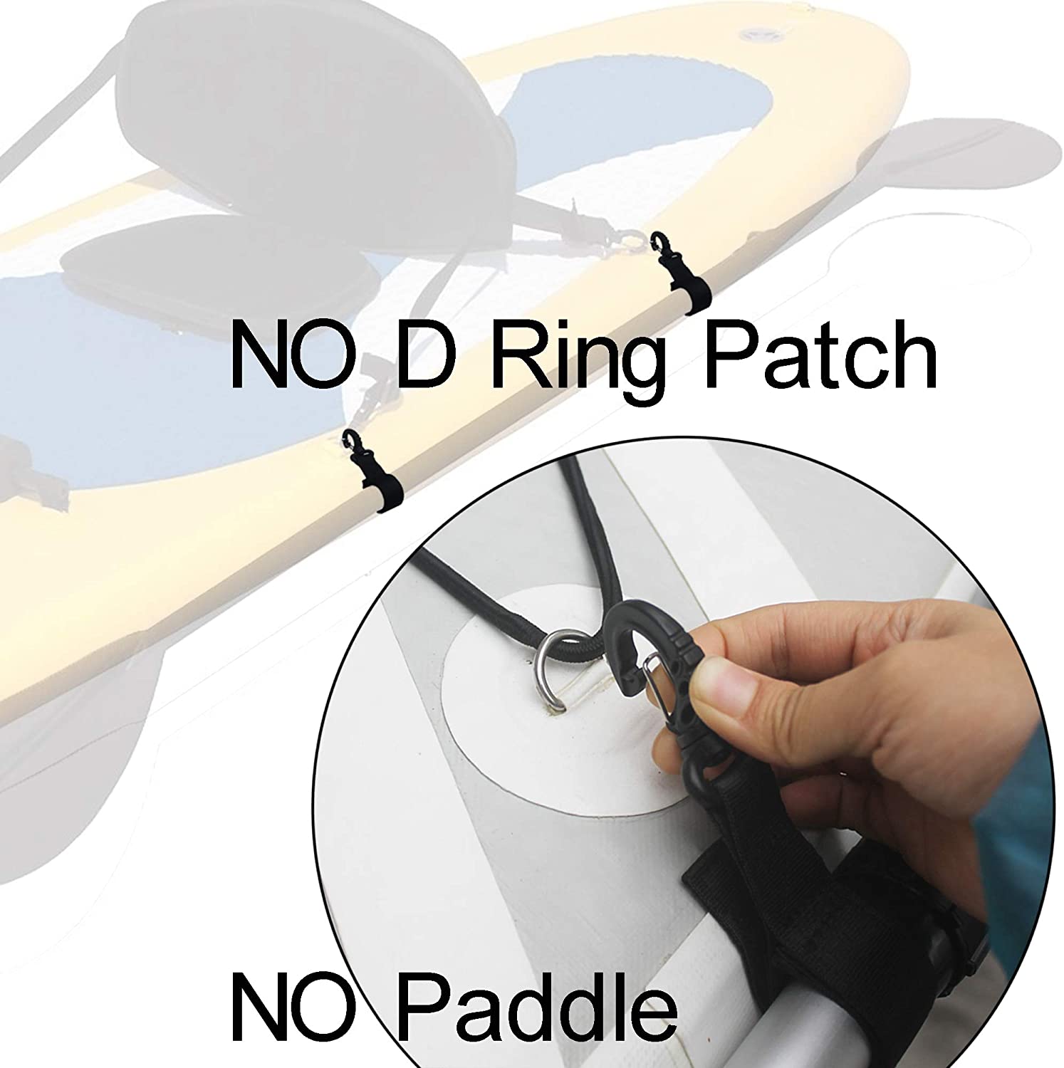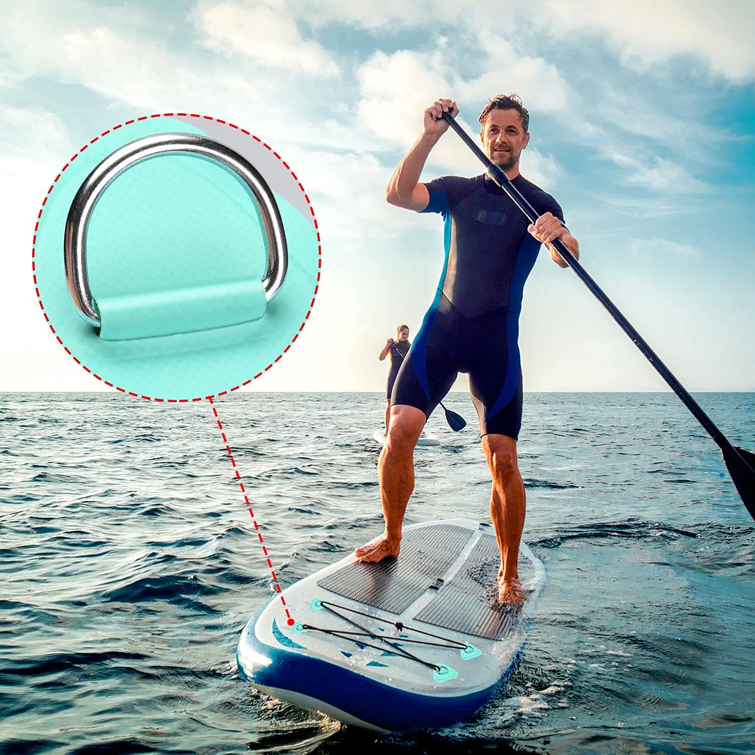 Stainless Steel D-Ring Patch - A durable and corrosion-resistant stainless steel D-ring patch that can be attached to your paddle board, providing a secure attachment point for accessories like leashes or straps.
