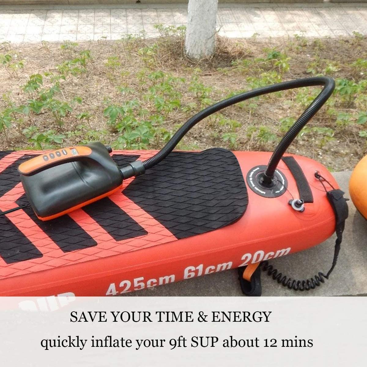 High-Pressure SUP Electric Air Pump - An electric pump specifically designed for inflating your paddle board to the recommended high pressure quickly and effortlessly, saving you time and effort during the inflation process.