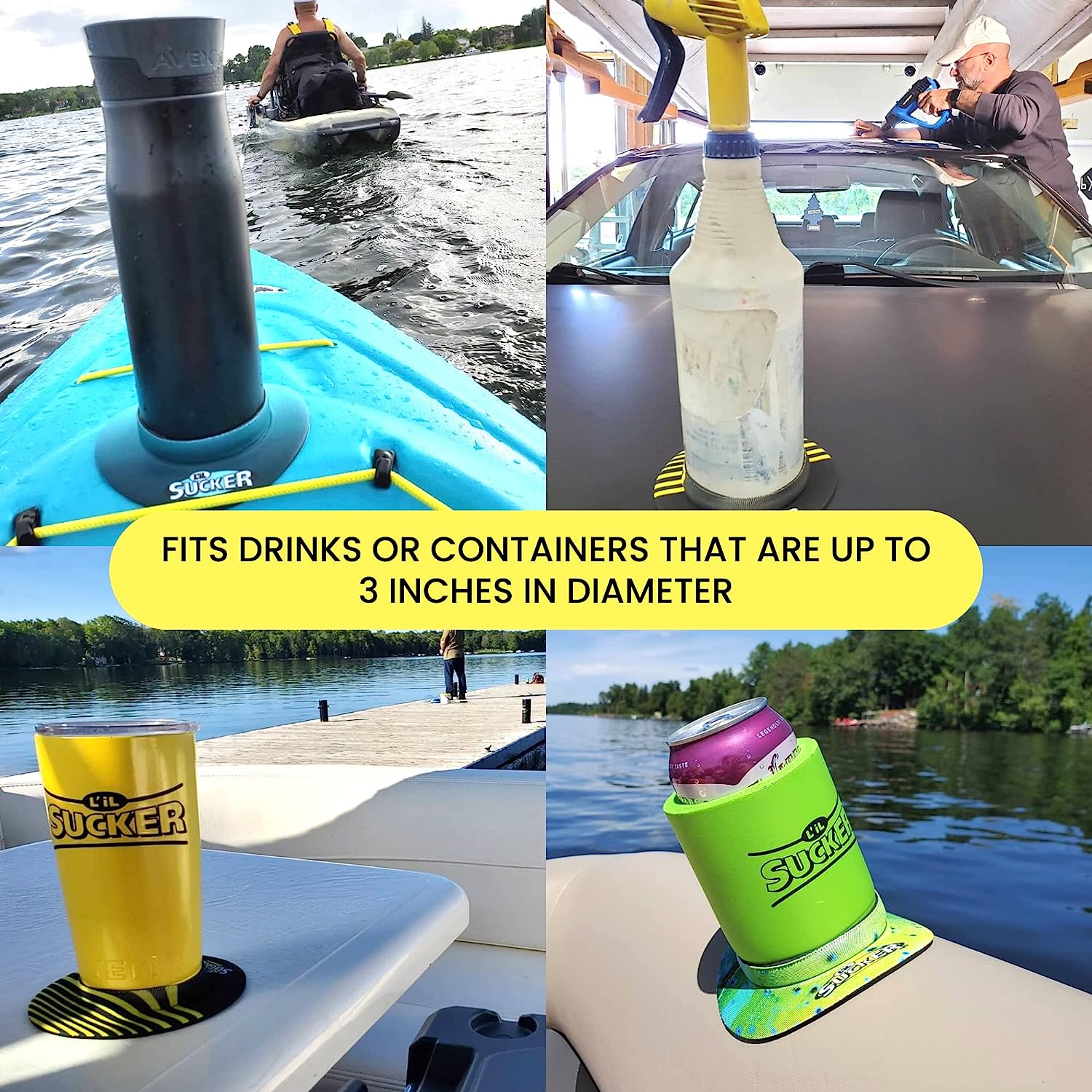 Compatible with a wide variety of drink containers, including cans, bottles, tumblers, and flasks, this L'il Sucker ensures your beverage stays in place.