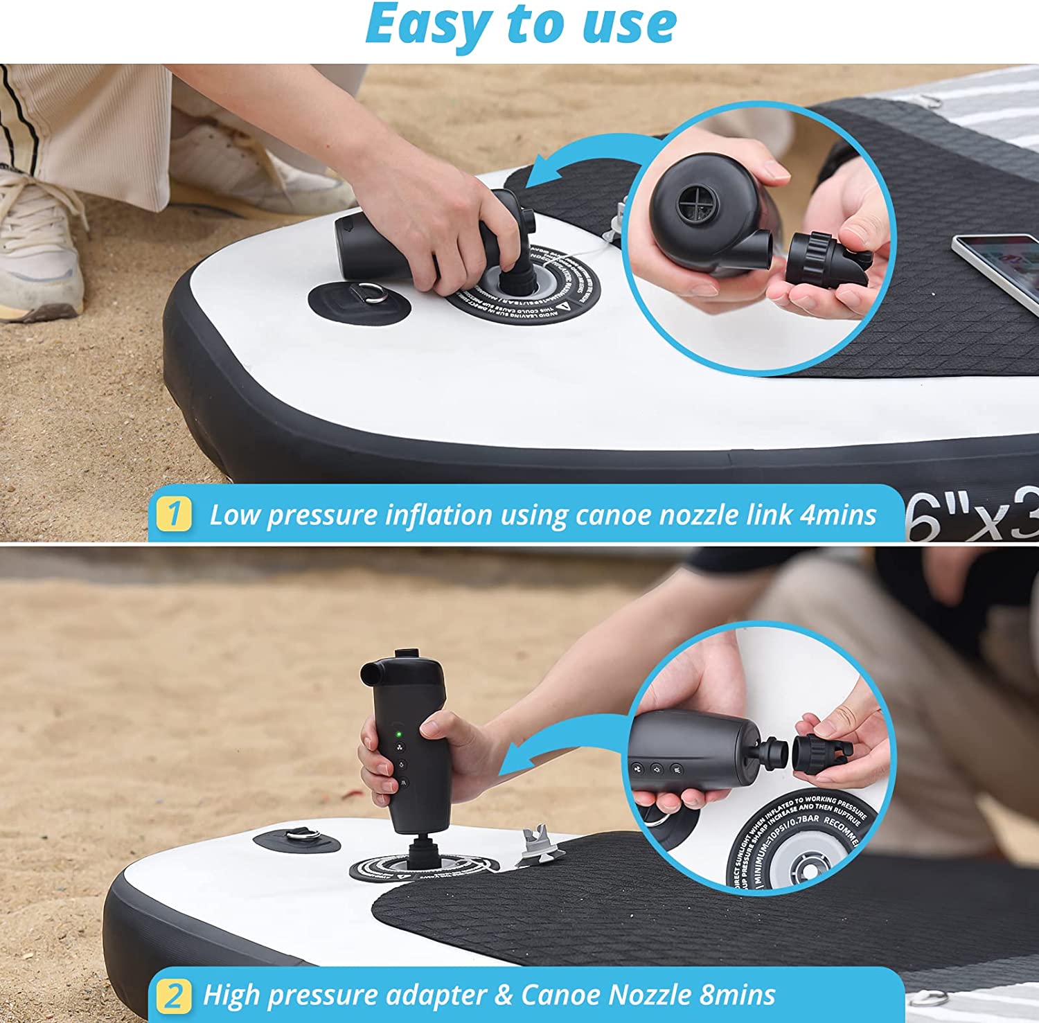 Equipped with 5 universal valve adapters, this pump is your ally in compatibility, working seamlessly with various inflatables. Whether it's your trusty paddleboard or other exciting water toys, the Tuomico pump has got you covered.