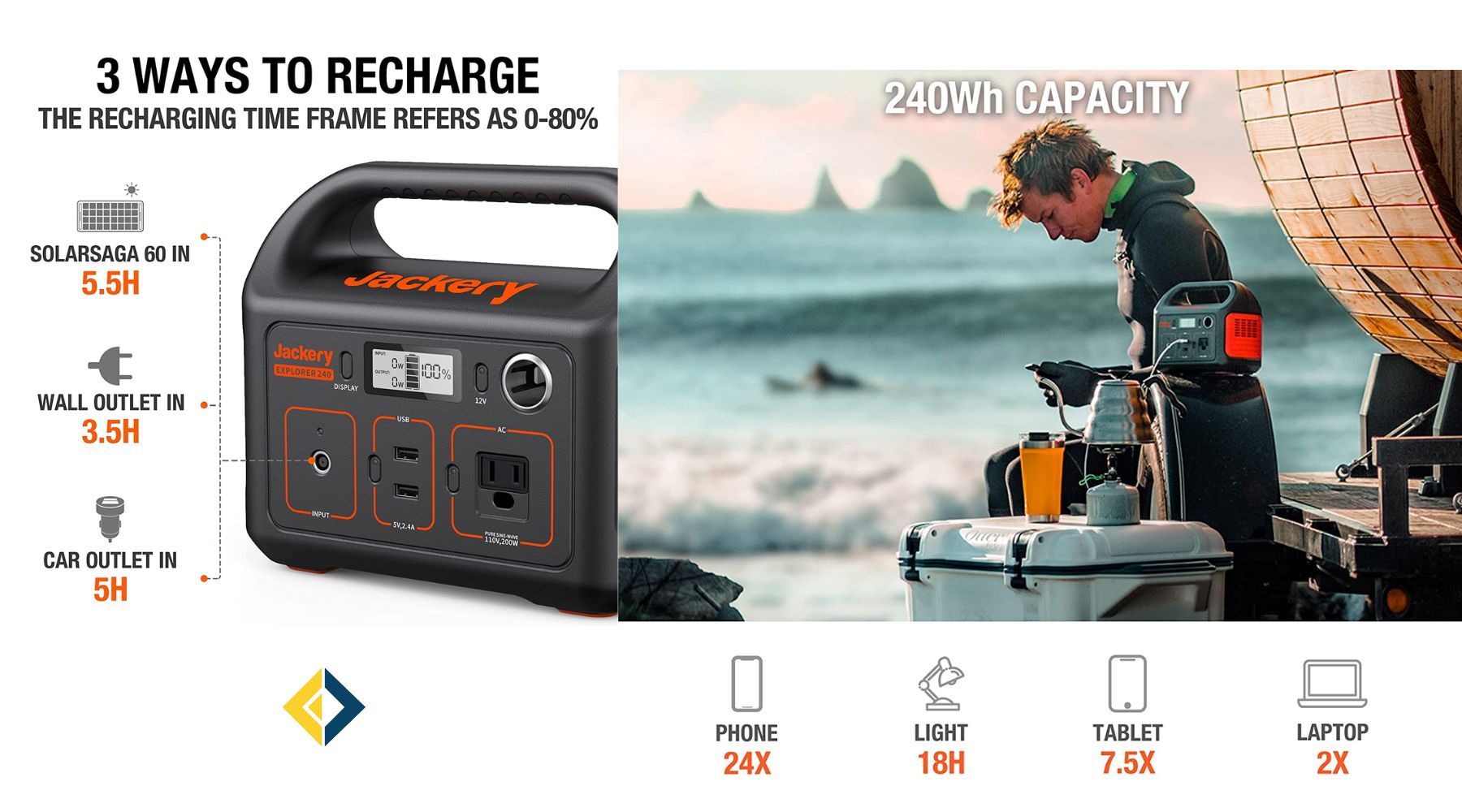 - Up to 240Wh capacity for long-lasting power.