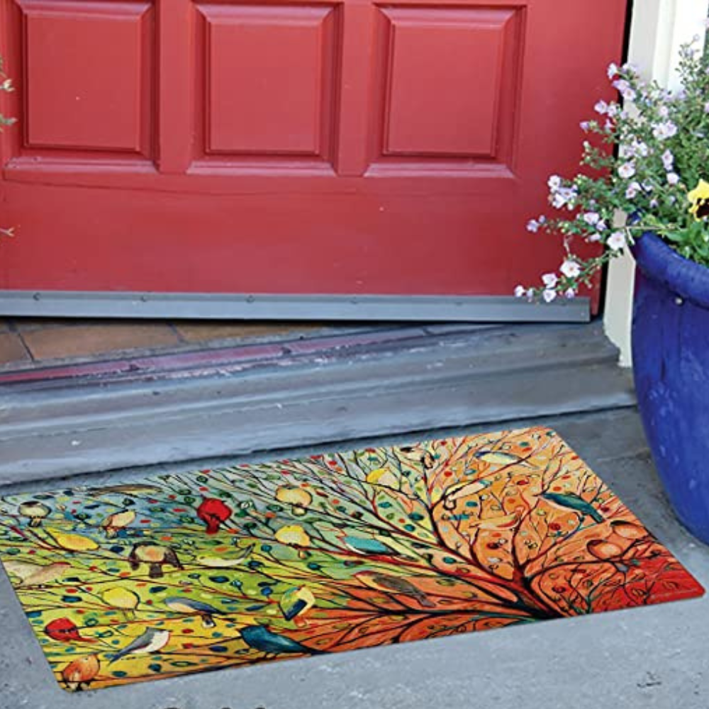Featuring a vibrant and colorful design with cheerful tree and birds, will make you smile every time you walk in the door. The durable coir construction is strong and built to last while capturing dirt and debris from shoes.