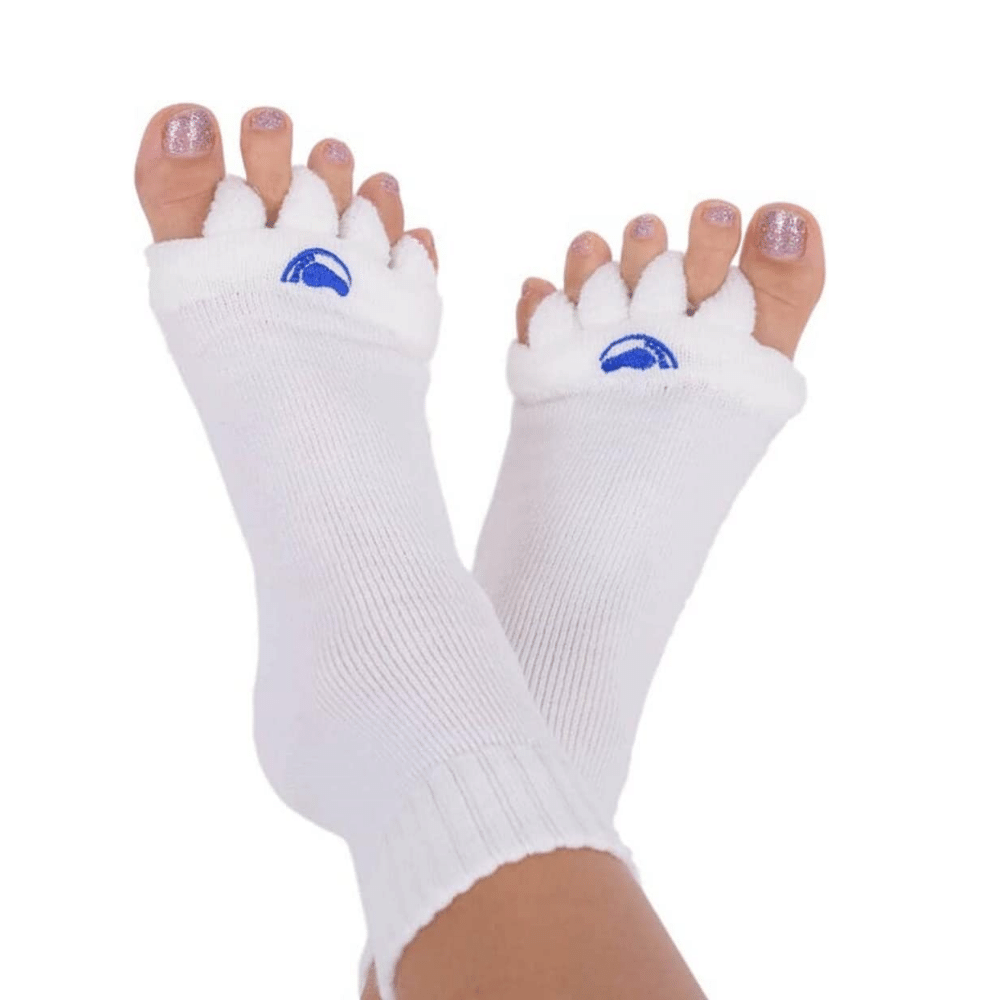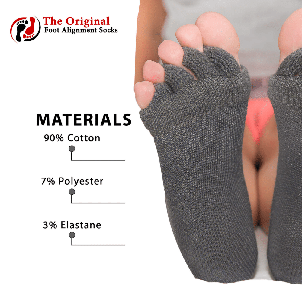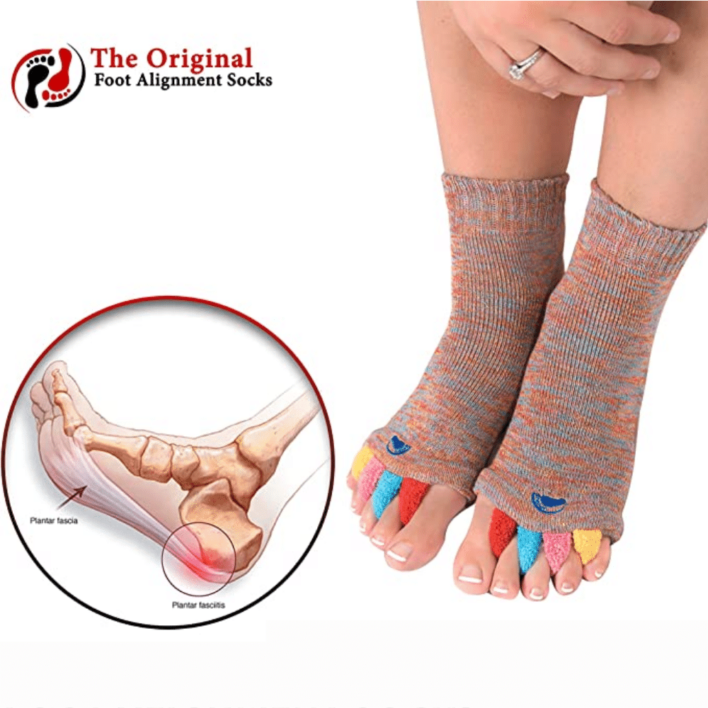 Introducing 'the original foot alignment socks'! Some people refer to these socks as toe alignment socks. These socks are designed to help with a variety of foot problems, including bunions, hammer toes, crooked toes, and plantar fasciitis. By gently realigning your toes and providing support for your arch, these socks can help to relieve foot pain and improve your overall foot health.