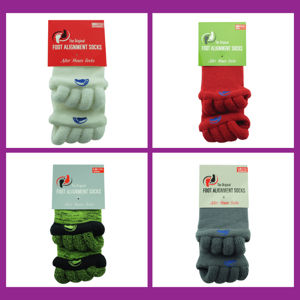 Look no further than the original foot alignment socks. These socks are specifically designed to help with alignment and pain relief. They've helped countless people find relief from bunions, hammer toes, crooked toes, and plantar fasciitis to walk and enjoy life more easily day to day pain free as nature intended.