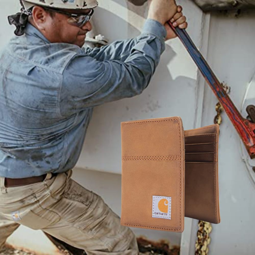 For the dads who prefer a timeless, rugged design, we recommend this trifold wallet from Carhartt. Crafted with full-grain saddle leather and an RFID blocking material to protect cards from unauthorized scanning, this wallet is as durable as it is stylish.